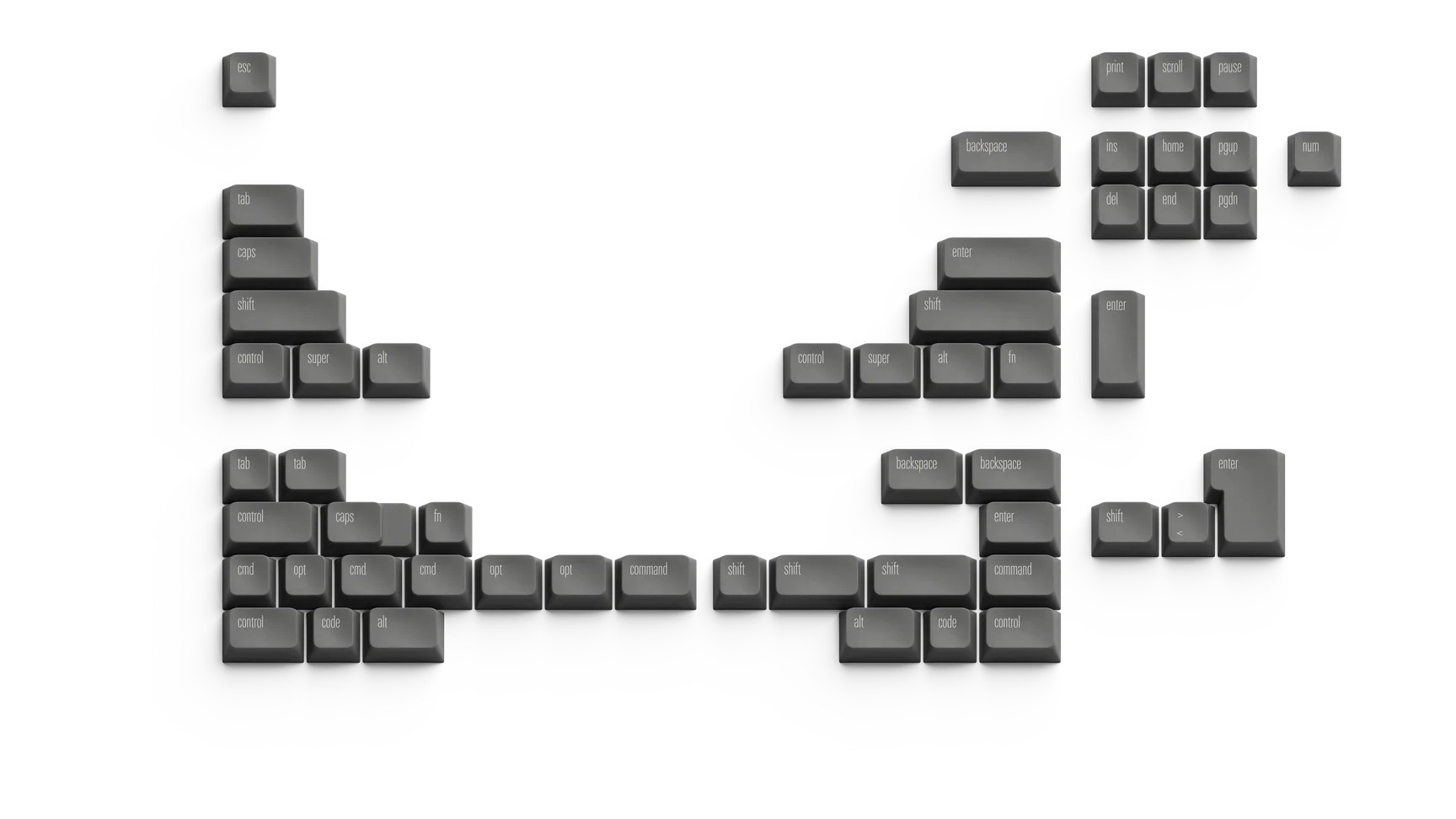 - HHKB, 60%, 65% (including 1.75u shift)