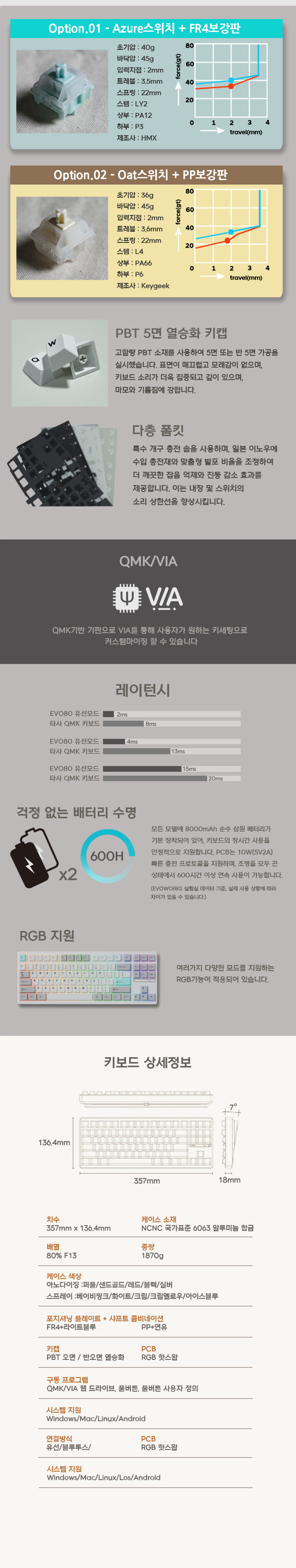 EVO80 스위치별 비교 타건 Azure vs Oat