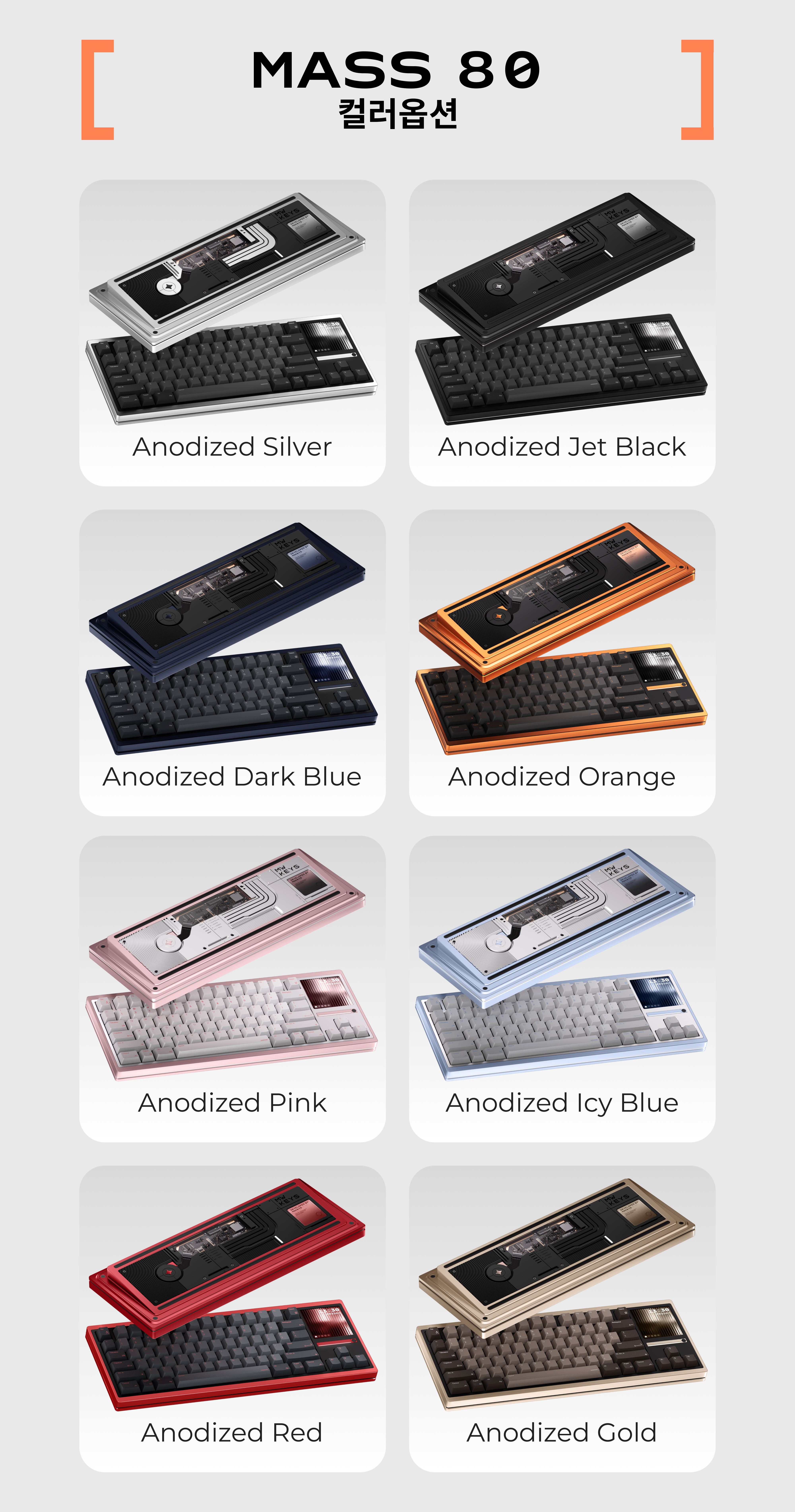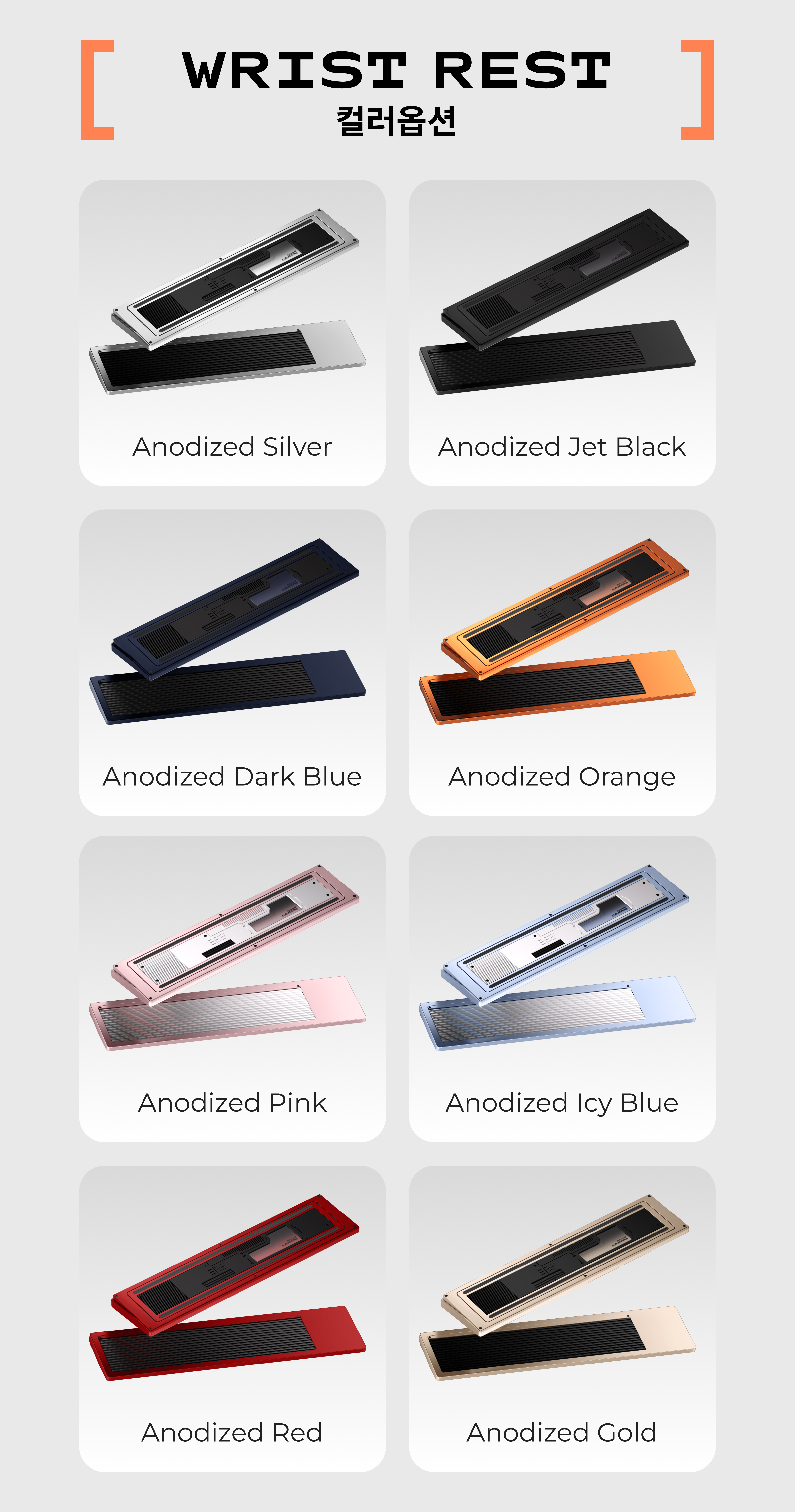 Ice Blue와 Pink 색상은 Ano silver, 그 외 모든 색상은 Ano Zet Black